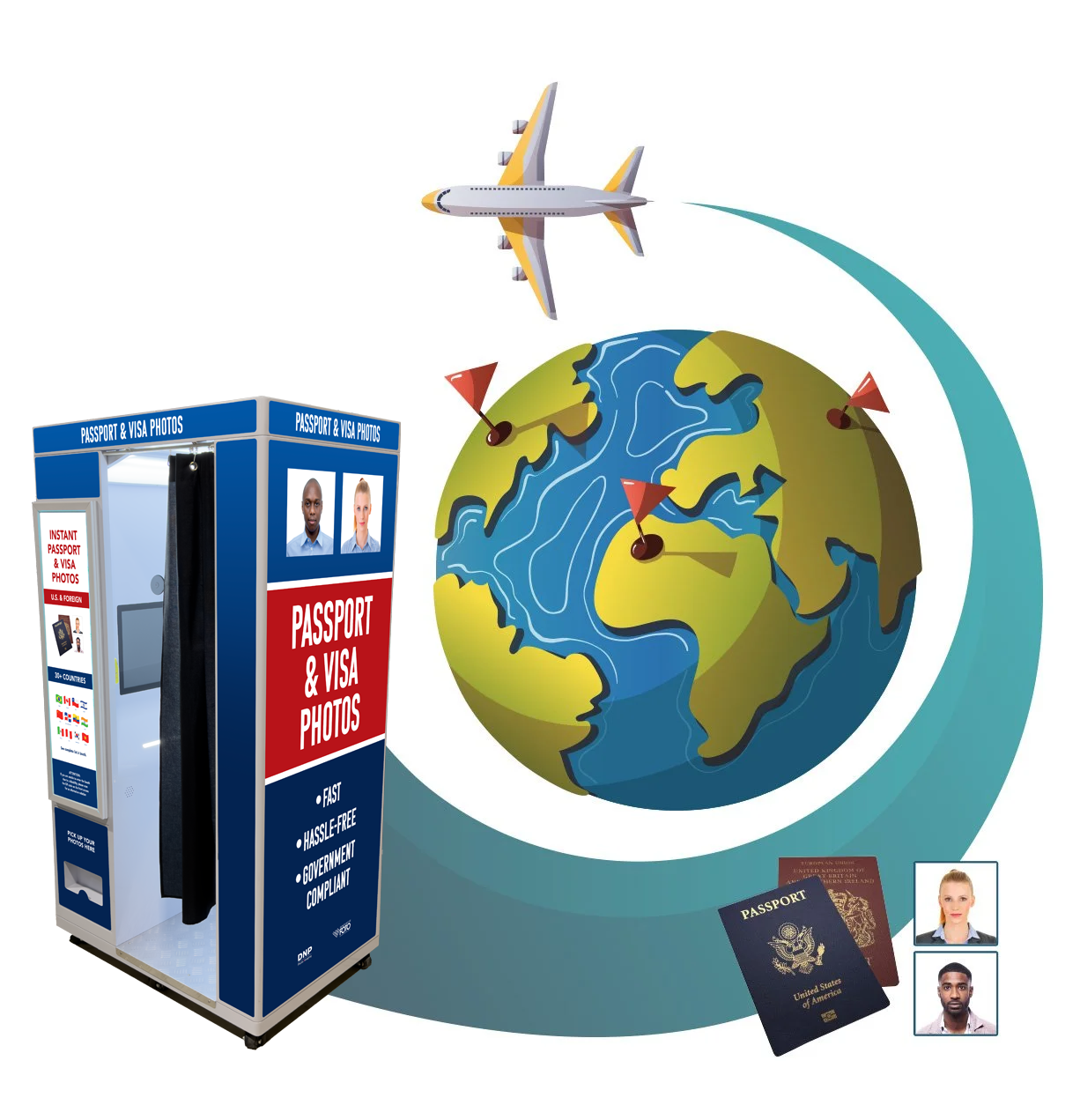 Our Passport and ID Photo Booths are designed to take high-quality passport and visa photos that will meet the country-specific Passport and Visa photos requirements. Since they are fully self-service, you can quickly and easily take your photos in private without waiting for store personnel to take your photo or check you out. Our Passport and ID Photo Booths are often less expensive than other passport photo providers.